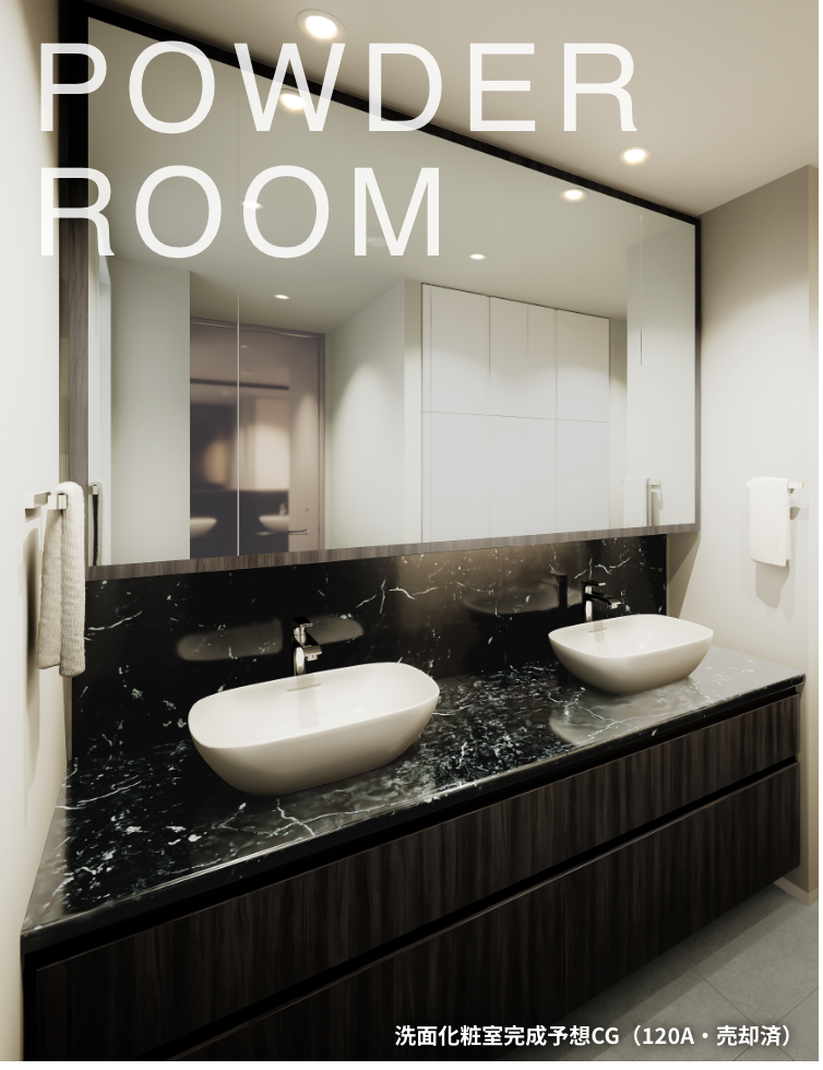 ホテルライクなパウダールーム。