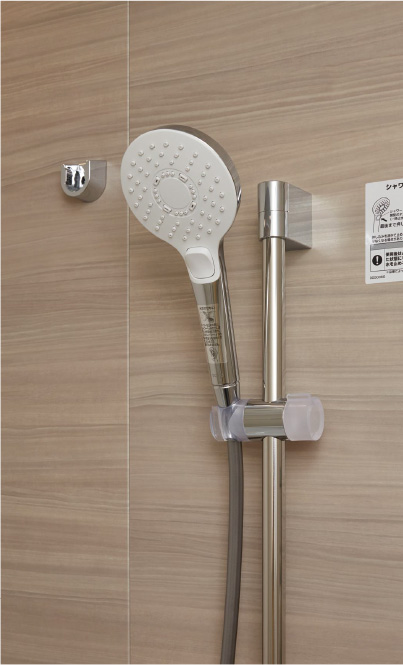 手元の止水機能と大粒の水玉が左右にスイングしながら勢いよく吐水する、新開発のウェーブ水流を搭載。スプレーシャワーとのミックスによる適度な刺激感のある浴び心地と節水を実現しました。