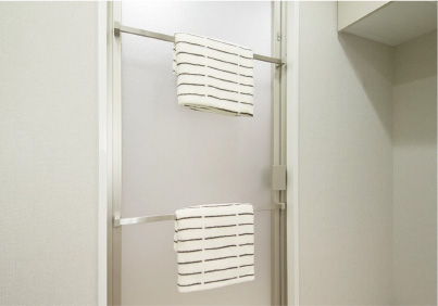 洗面化粧室側のタオルバーを上下2本にすることで、複数のタオルをかけたり、バスマットをかけたり用途が広がります。