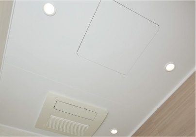 照明を天井に埋め込んでいるので、天井廻りがスッキリ。長持ちするLED照明を採用することで付け替えの手間も減らします。