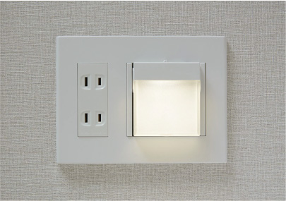 人を感知して自動点灯・消灯するオートライトを玄関近くの廊下に設置。停電時は、保安灯として利用できます。
