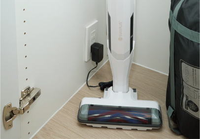 物入がより便利に利用できるよう、お掃除ロボットやコードレス掃除機の充電に便利なコンセントを設置しました。