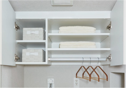 タオルや肌着などの収納に便利なリネン庫を採用。脱衣時や入浴後など、必要なものをすぐに取り出すことができます。
