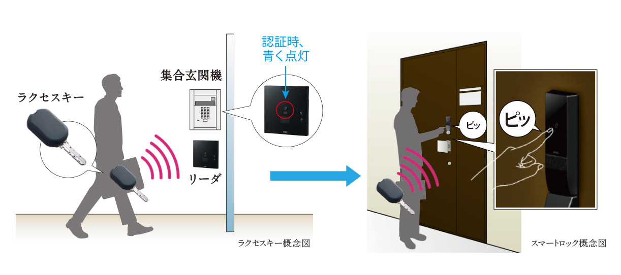 ラクセスキーをカバン等に入れたままで、エントランスのオートドアを解錠でき、スムーズに入館できます。