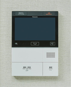 来訪者を集合玄関機の映像と音声で確認できるカラーモニター付インターホンを採用しています。ハンズフリー・タッチパネルによる操作に加え、録画・録音機能、宅配ロッカー着荷表示機能付きです。
