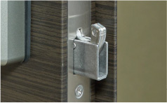 施錠をするためのデッドボルト自体を鎌形状とし、バール等のこじ開けに強く抵抗します。