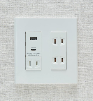 埋め込み型のUSBコンセントを採用。USB電源アダプタが不要で快適にスマホや家電などを充電することができます。