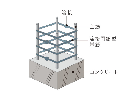 主要な柱には継目が溶接された溶接閉鎖型フープ筋を採用しています。