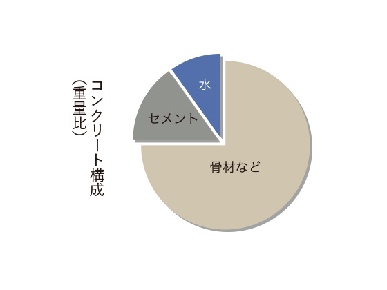 コンクリート内の水とセメントの重量比を50%以下にすることで、躯体の耐久性を高めています。