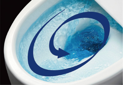 便座から立ち上がると自動的に便器を洗浄。強力な水流が便器鉢内のすみずみまで回り、少ない水でもしっかり汚れを洗い流します。