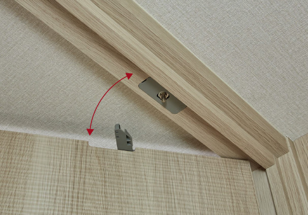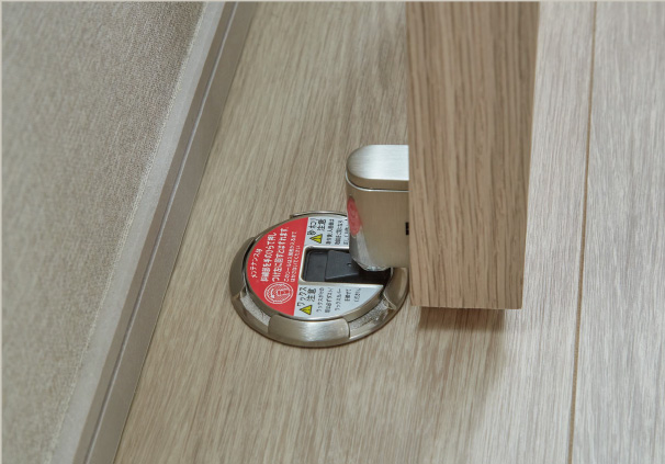 ドアを軽く押し当てるだけでロックし、再操作で解除できるため、かがむ動作不要でドアを固定できます。