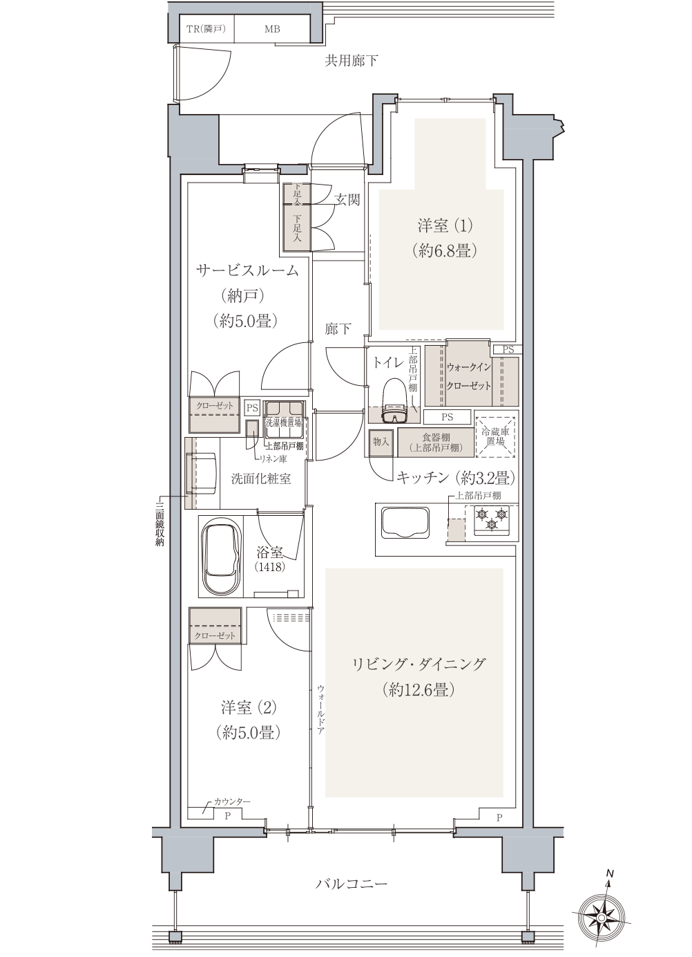 ウォークインクローゼットや食器棚、物入、リネン庫など充実した収納空間を設けました。