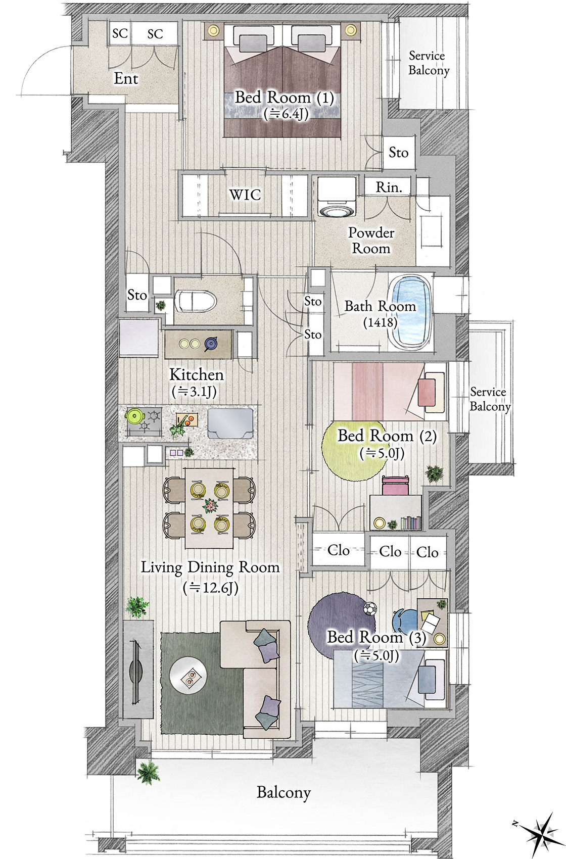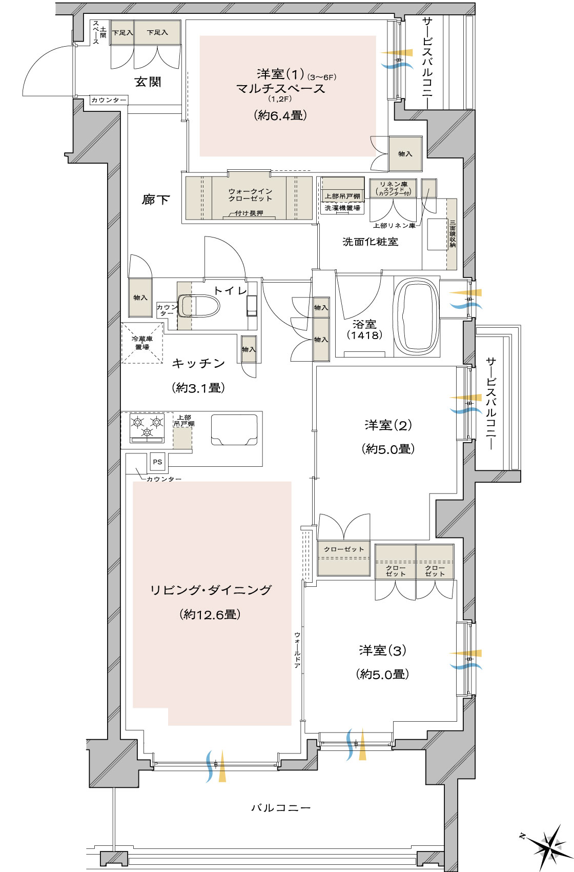 バルコニー面積:10.41m2 サービスバルコニー面積:4.22m2