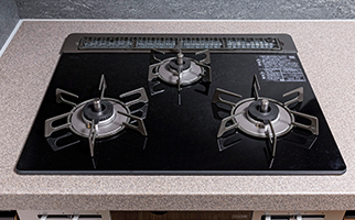 軽い汚れはサッとひと拭きするだけ、お手入れがしやすくデザインも美しい耐熱ガラストップコンロです。