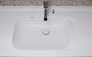 天板とボウルに継ぎ目のない一体型デザインを採用。汚れがたまりにくく、さっと拭くだけで美しさを保てる、お手入れのしやすさが魅力です。