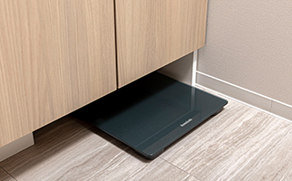 洗面化粧台の下部に、ヘルスメーターなどをすっきりと収められるスペースを確保しました。