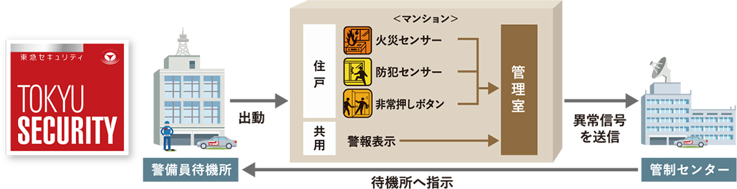 東急沿線エリアを知り尽くした東急セキュリティとオンライン化された安心の機械警備システムを導入。専有部分で火災や侵入異常が発生し、各種センサーが作動した場合には、必要に応じて東急セキュリティの備員が急行。地域密着型のセキュリティサービスにより、スピーディーな対応が可能です。