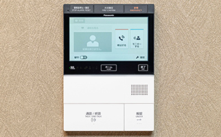来訪者を集合玄関機の映像と音声で確認。ハンズフリートークによる操作に加え、録画・録音機能、宅配ロッカー着荷表示機能付きです。
