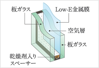 屋外の温度変化を室内に伝えにくくするLow-E複層ガラスを採用。ガラスの間に空気層を設けることで断熱性を高め、結露の発生を抑制します。