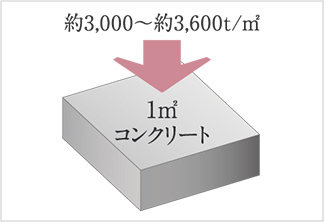 建物の構造耐力上主要な部分には、設計基準強度30〜36N/m㎡のコンクリートを使用しています。これは、1㎡で約3,000〜3,600tの圧縮力に耐えられる強度を意味しています。