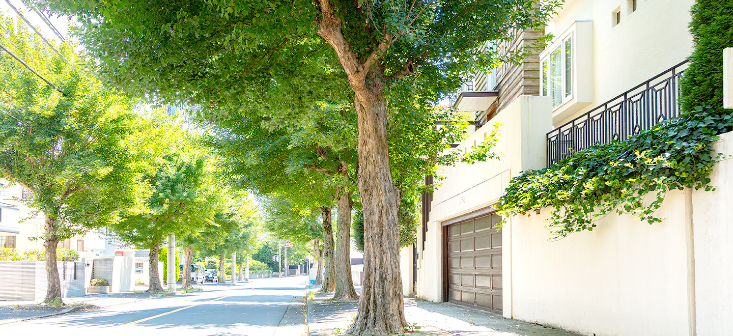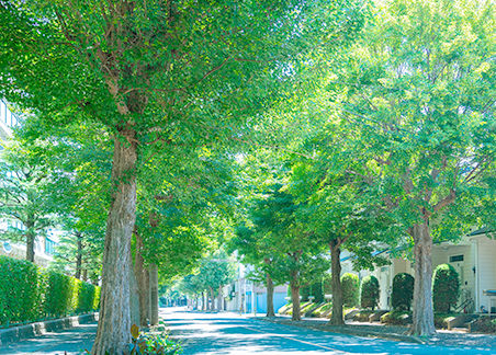 日常生活をみずみずしく彩るユリノキの並木道の緑景や豊富な公園に抱かれ、美しい季節の移ろいに親しむ。
